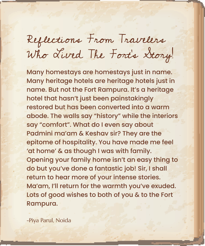 Every corner of Rampura Fort carries its own mood, from quiet courtyards to open terraces and old corridors shaped by time. Here are a few moments captured within the fort and its surroundings.